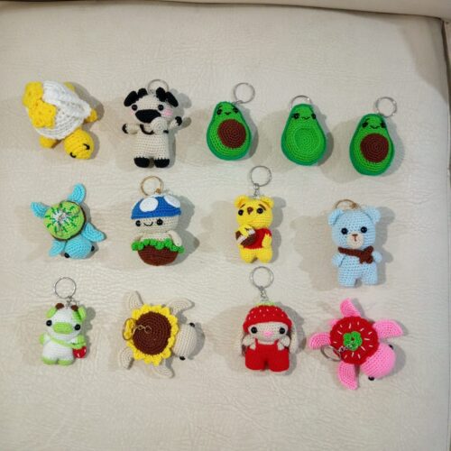 Productos en tejido crochet como muñecos y llaveros