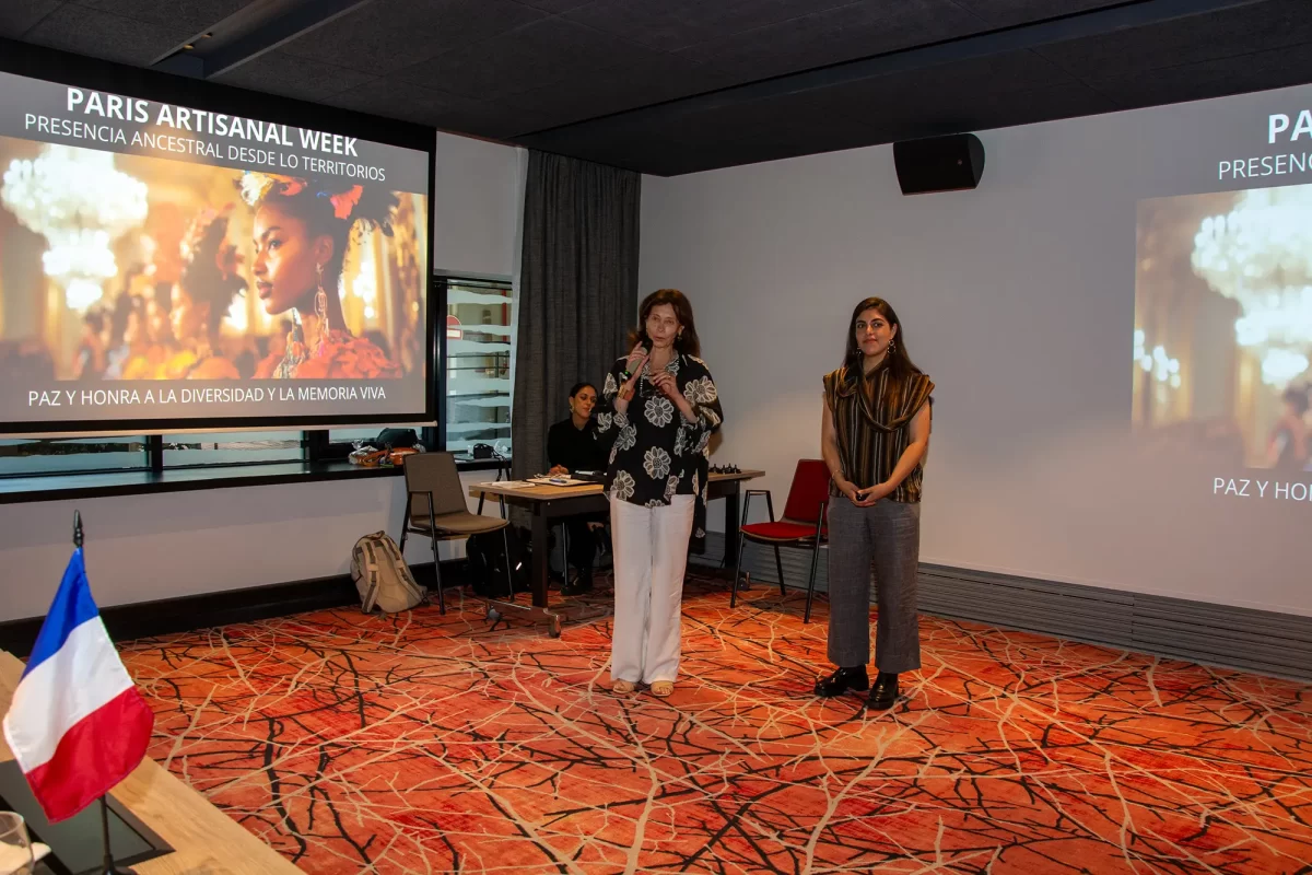 En este escenario internacional, Martha Alonso también presentó, junto a Gala Limón fundadora del Co-Foro Global de Ciudades Sostenibles, diseñadora de alta costura francesa y creadora de su propia marca, el proyecto “Semana Artesanal de París: Presencia Ancestral desde los Territorios”.
